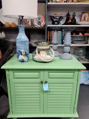 Kim’s Korner is a warm, creative booth filled with a mix of handmade charm and everyday home décor. Featuring one-of-a-kind birdhouses and tin men crafted by her father, this space blends heartfelt, handcrafted pieces with small furniture, decorative accents, and fun little extras.