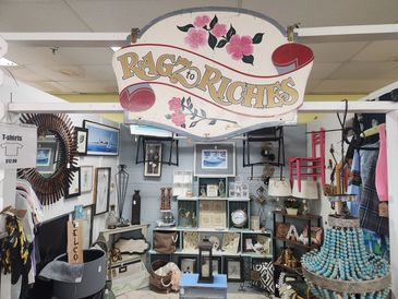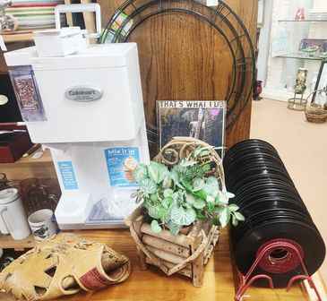 Waves of the Past & Present Thrift offers a mix of practical, everyday finds and resale favorites. This booth features a rotating selection of home goods, accessories, and popular brand-name resale items including Thirty-One bags, Pampered Chef, and beauty and nail products.